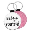 Believe in your self, Μπρελόκ Δερματίνη, στρογγυλό ΡΟΖ (5cm)