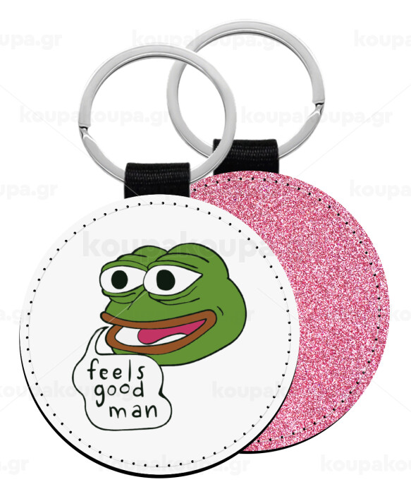 Pepe the frog, Μπρελόκ Δερματίνη, στρογγυλό ΡΟΖ (5cm)