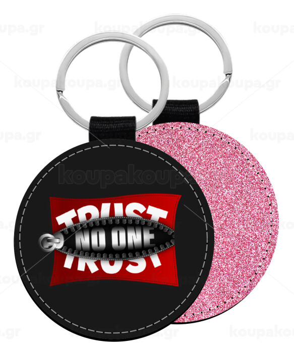 Trust no one... (zipper), Μπρελόκ Δερματίνη, στρογγυλό ΡΟΖ (5cm)