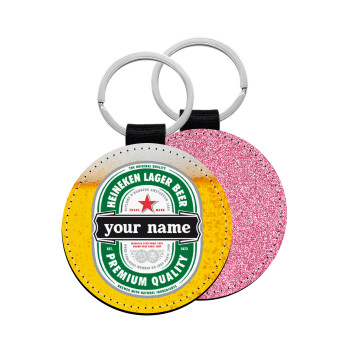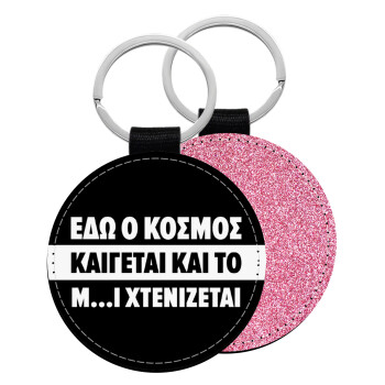 Mπρελόκ από δερματίνη με glitter στην μία πλευρά και στην άλλη δερματίνη μεγάλης αντοχής. Κρίκος ασφάλειας για τα κλειδιά.
