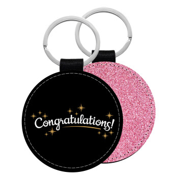 Congratulations, Μπρελόκ Δερματίνη, στρογγυλό ΡΟΖ (5cm)