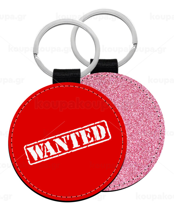 Wanted, Μπρελόκ Δερματίνη, στρογγυλό ΡΟΖ (5cm)