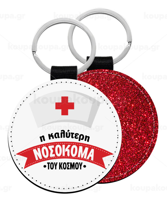 Η καλύτερη νοσοκόμα του κόσμου!!!, Μπρελόκ Δερματίνη, στρογγυλό ΚΟΚΚΙΝΟ (5cm)