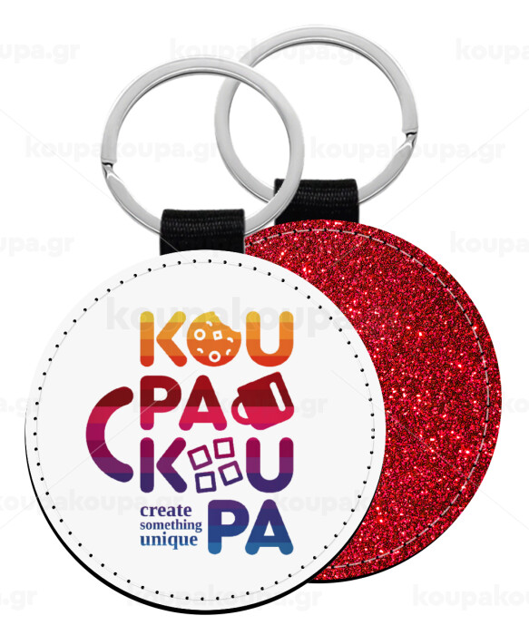 Mπρελόκ από δερματίνη με glitter στην μία πλευρά και στην άλλη δερματίνη μεγάλης αντοχής. Κρίκος ασφάλειας για τα κλειδιά.