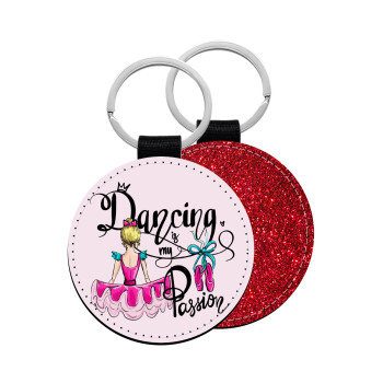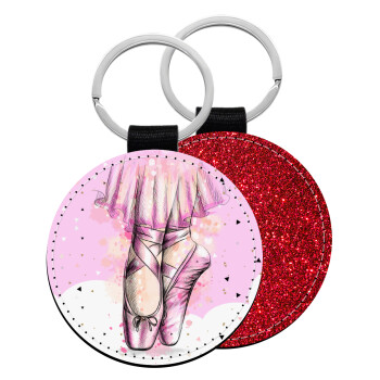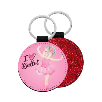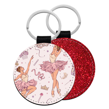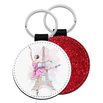 Ballerina in Paris, Μπρελόκ Δερματίνη, στρογγυλό ΚΟΚΚΙΝΟ (5cm)