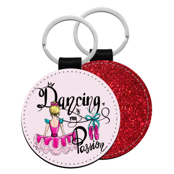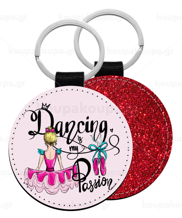Dancing is my Passion, Μπρελόκ Δερματίνη, στρογγυλό ΚΟΚΚΙΝΟ (5cm)