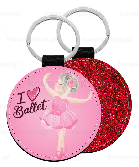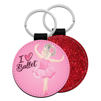 I Love Ballet, Μπρελόκ Δερματίνη, στρογγυλό ΚΟΚΚΙΝΟ (5cm)