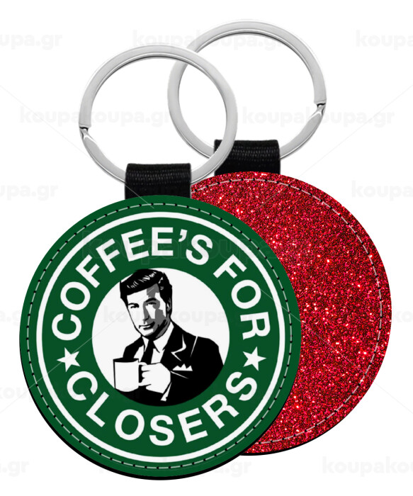 Coffee's for closers, Μπρελόκ Δερματίνη, στρογγυλό ΚΟΚΚΙΝΟ (5cm)