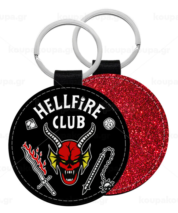 Hellfire CLub, Stranger Things, Μπρελόκ Δερματίνη, στρογγυλό ΚΟΚΚΙΝΟ (5cm)