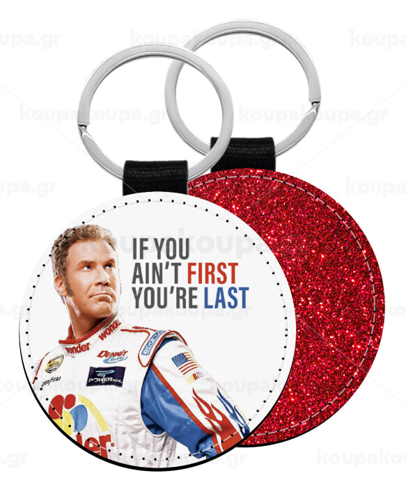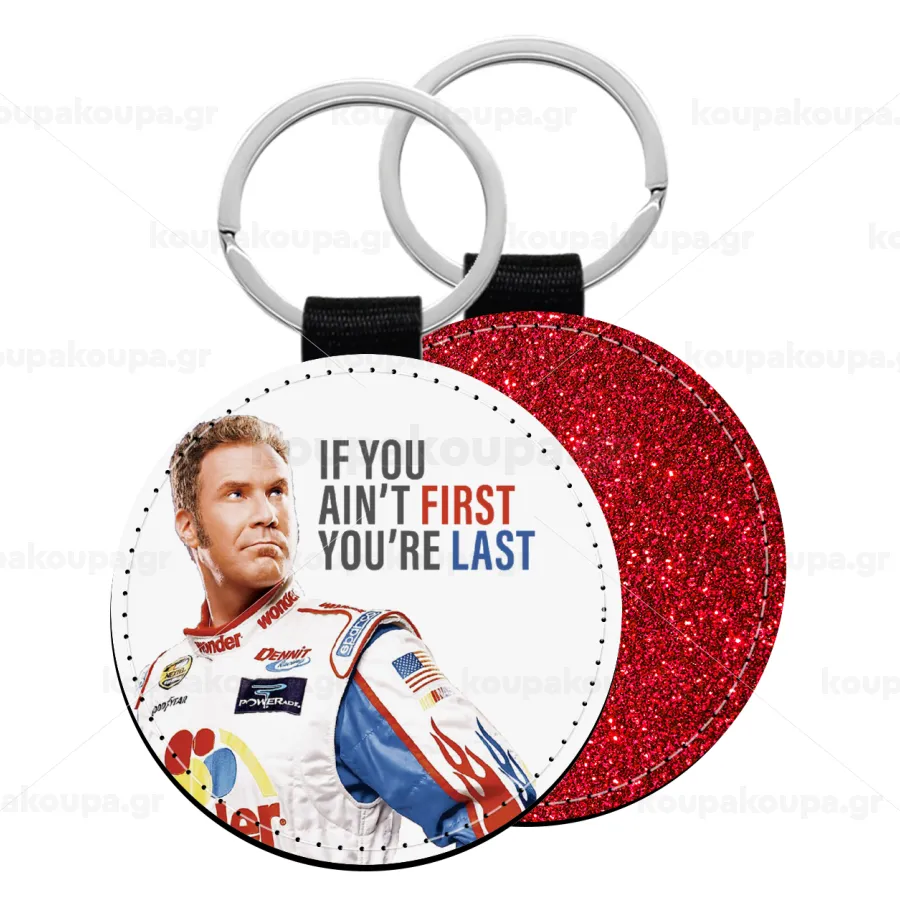 If You Ain't First You're Last Ricky Bobby, Talladega Nights, Μπρελόκ Δερματίνη, στρογγυλό ΚΟΚΚΙΝΟ (5cm)