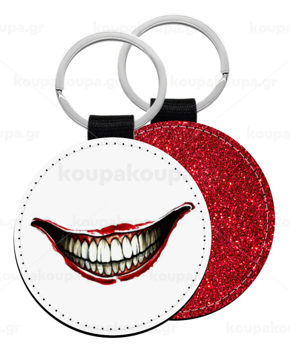 Joker smile, Μπρελόκ Δερματίνη, στρογγυλό ΚΟΚΚΙΝΟ (5cm)