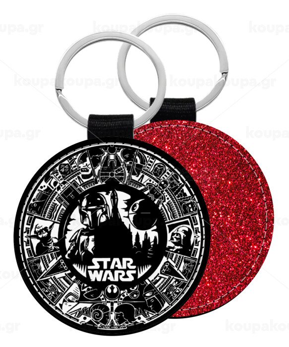 Star Wars Disk, Μπρελόκ Δερματίνη, στρογγυλό ΚΟΚΚΙΝΟ (5cm)
