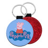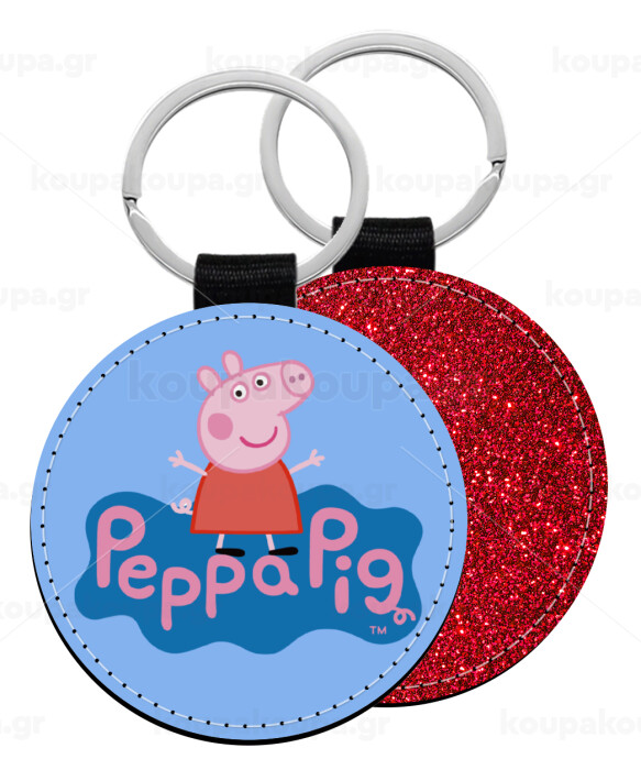 Πέππα το γουρουνάκι μπλε με όνομα, Μπρελόκ Δερματίνη, στρογγυλό ΚΟΚΚΙΝΟ (5cm)