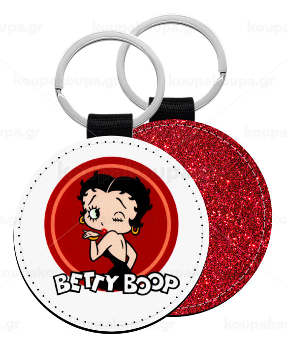 Betty Boop kiss, Μπρελόκ Δερματίνη, στρογγυλό ΚΟΚΚΙΝΟ (5cm)