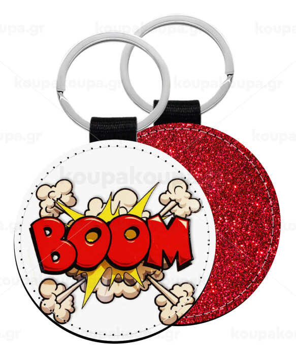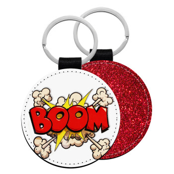 BOOM!!!, Μπρελόκ Δερματίνη, στρογγυλό ΚΟΚΚΙΝΟ (5cm)