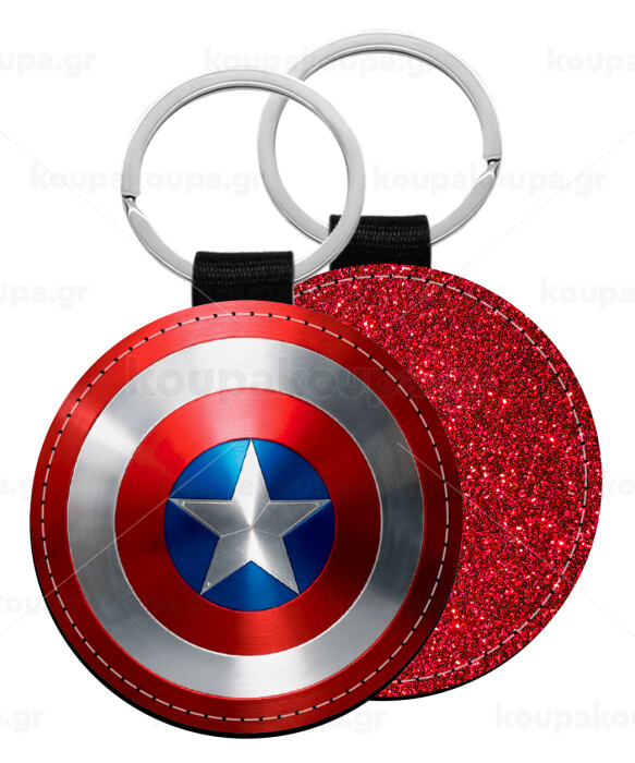 Captain America, Μπρελόκ Δερματίνη, στρογγυλό ΚΟΚΚΙΝΟ (5cm)