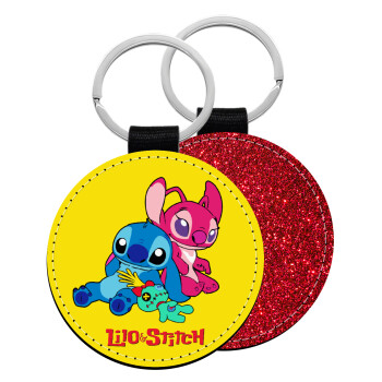 Lilo & Stitch, Μπρελόκ Δερματίνη, στρογγυλό ΚΟΚΚΙΝΟ (5cm)