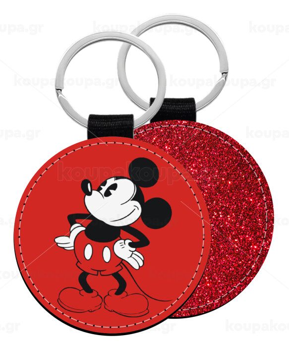 Mickey Classic, Μπρελόκ Δερματίνη, στρογγυλό ΚΟΚΚΙΝΟ (5cm)