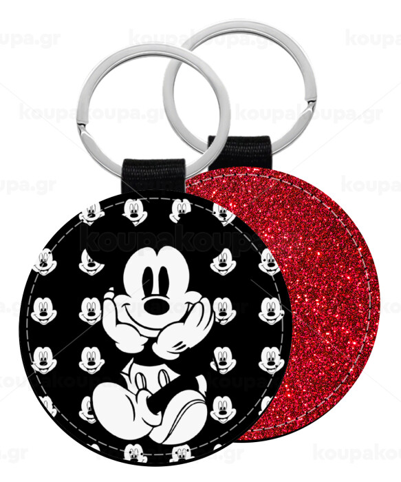 Mickey, Μπρελόκ Δερματίνη, στρογγυλό ΚΟΚΚΙΝΟ (5cm)