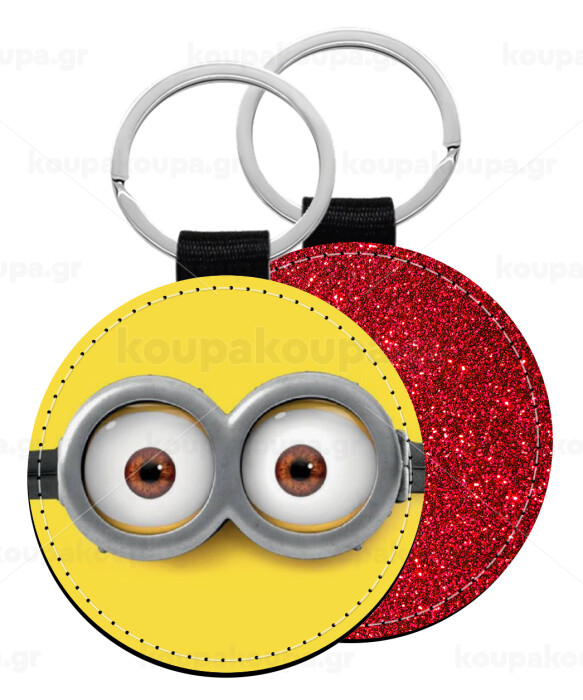 Minions, Μπρελόκ Δερματίνη, στρογγυλό ΚΟΚΚΙΝΟ (5cm)