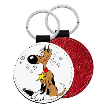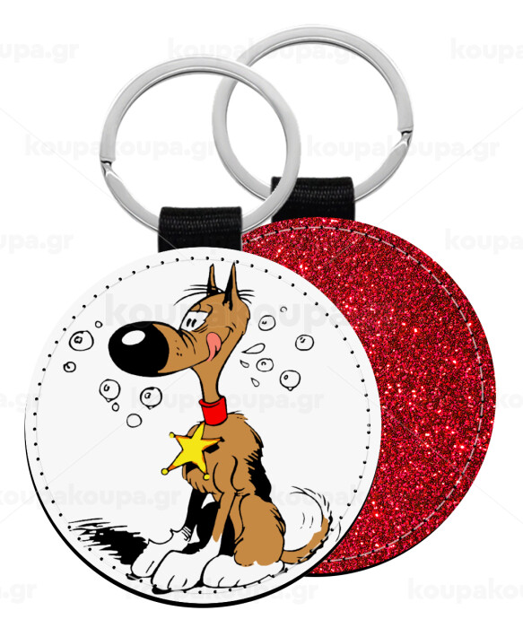 Rantanplan (Ρανταπλάν), Μπρελόκ Δερματίνη, στρογγυλό ΚΟΚΚΙΝΟ (5cm)
