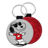 Snoopy καρδούλα, Μπρελόκ Δερματίνη, στρογγυλό ΚΟΚΚΙΝΟ (5cm)