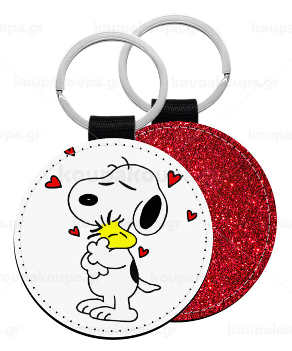 Snoopy Love, Μπρελόκ Δερματίνη, στρογγυλό ΚΟΚΚΙΝΟ (5cm)