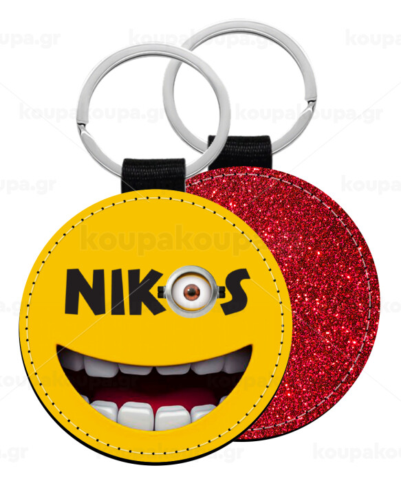 The minions, Μπρελόκ Δερματίνη, στρογγυλό ΚΟΚΚΙΝΟ (5cm)