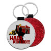 Mπρελόκ από δερματίνη με glitter στην μία πλευρά και στην άλλη δερματίνη μεγάλης αντοχής. Κρίκος ασφάλειας για τα κλειδιά.