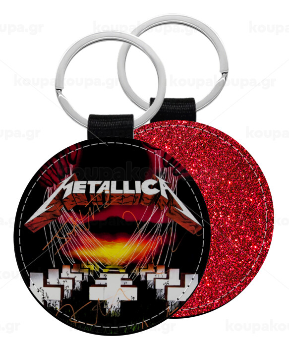 Metallica master of puppets, Μπρελόκ Δερματίνη, στρογγυλό ΚΟΚΚΙΝΟ (5cm)