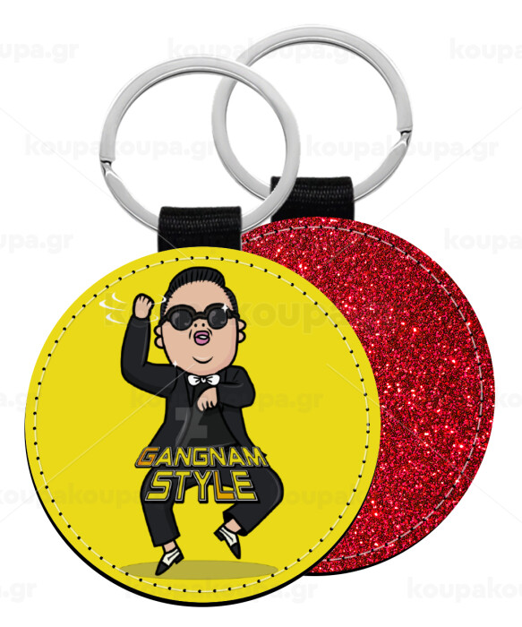 PSY - GANGNAM STYLE, Μπρελόκ Δερματίνη, στρογγυλό ΚΟΚΚΙΝΟ (5cm)