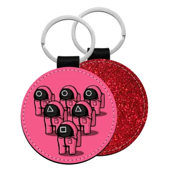The squid game among us, Μπρελόκ Δερματίνη, στρογγυλό ΚΟΚΚΙΝΟ (5cm)