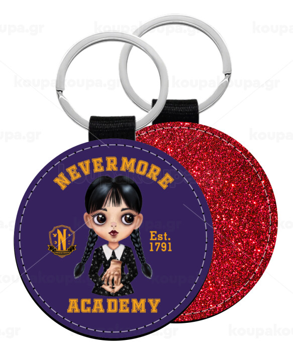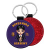 Wednesday Adams, nevermore, Μπρελόκ Δερματίνη, στρογγυλό ΚΟΚΚΙΝΟ (5cm)