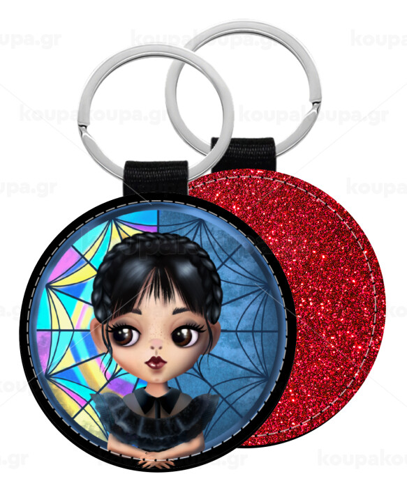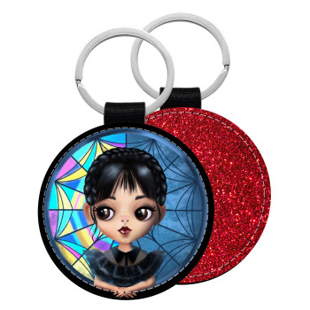 Wednesday big eyes, Μπρελόκ Δερματίνη, στρογγυλό ΚΟΚΚΙΝΟ (5cm)