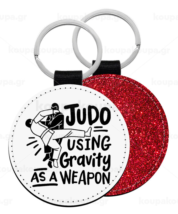 Judo using gravity as a weapon, Μπρελόκ Δερματίνη, στρογγυλό ΚΟΚΚΙΝΟ (5cm)