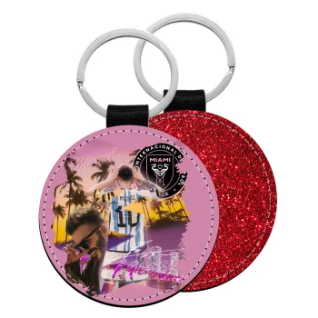 Lionel Messi Miami, Μπρελόκ Δερματίνη, στρογγυλό ΚΟΚΚΙΝΟ (5cm)