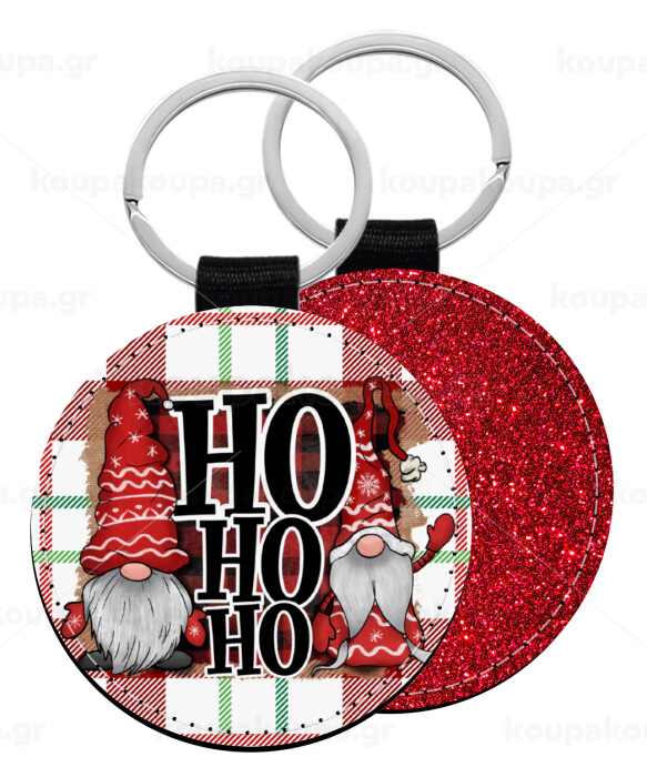 Ho ho ho, Μπρελόκ Δερματίνη, στρογγυλό ΚΟΚΚΙΝΟ (5cm)