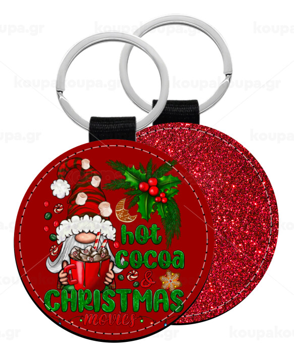 Hot cocoa and Christmas movies, Μπρελόκ Δερματίνη, στρογγυλό ΚΟΚΚΙΝΟ (5cm)