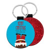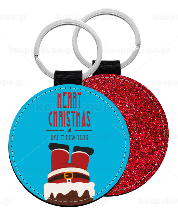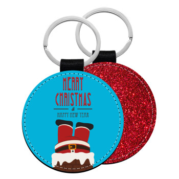 Merry christmas chimney, Μπρελόκ Δερματίνη, στρογγυλό ΚΟΚΚΙΝΟ (5cm)