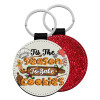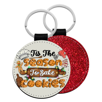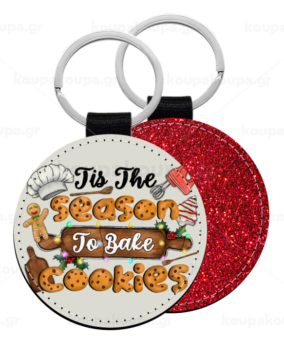 Tis The Season To Bake Cookies, Μπρελόκ Δερματίνη, στρογγυλό ΚΟΚΚΙΝΟ (5cm)