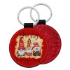 Xmas Elves, Μπρελόκ Δερματίνη, στρογγυλό ΚΟΚΚΙΝΟ (5cm)