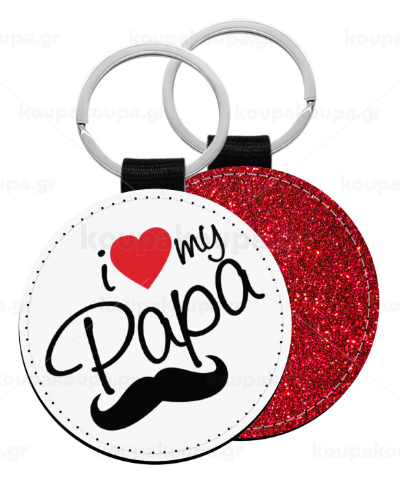 I Love my papa, Μπρελόκ Δερματίνη, στρογγυλό ΚΟΚΚΙΝΟ (5cm)