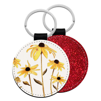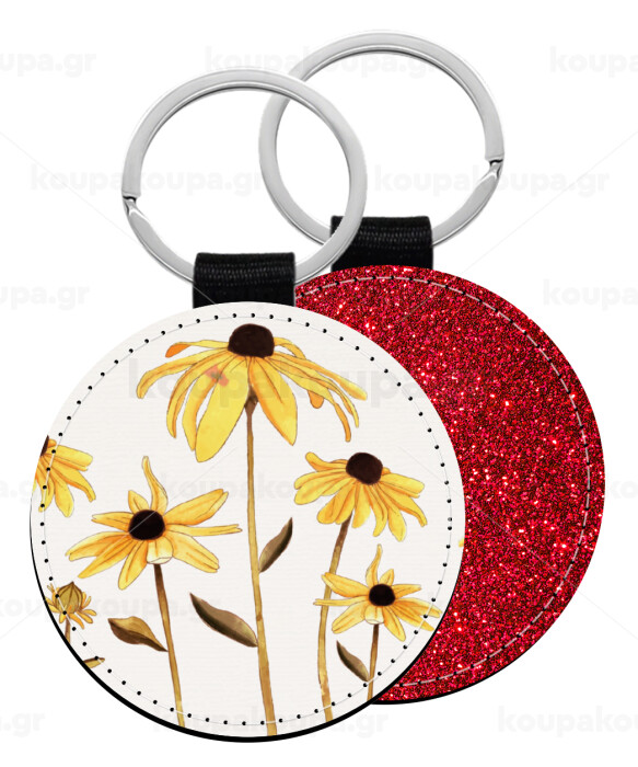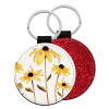Daisies flower, Μπρελόκ Δερματίνη, στρογγυλό ΚΟΚΚΙΝΟ (5cm)