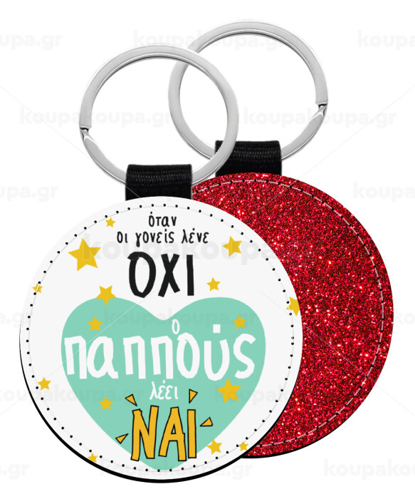 Όταν οι γονείς λένε ΟΧΙ, ο παππούς λέει ΝΑΙ, Μπρελόκ Δερματίνη, στρογγυλό ΚΟΚΚΙΝΟ (5cm)
