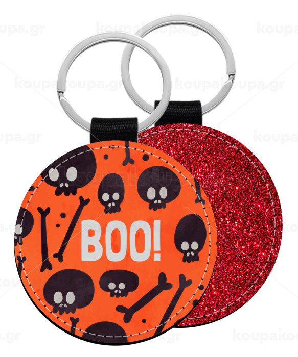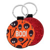 Halloween boo, Μπρελόκ Δερματίνη, στρογγυλό ΚΟΚΚΙΝΟ (5cm)