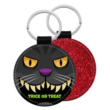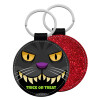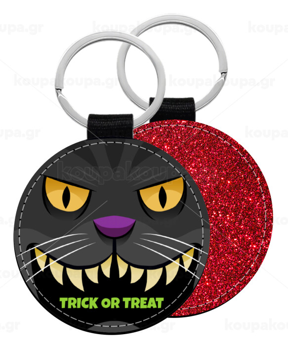 Halloween trick or treat Cat, Μπρελόκ Δερματίνη, στρογγυλό ΚΟΚΚΙΝΟ (5cm)