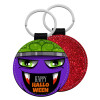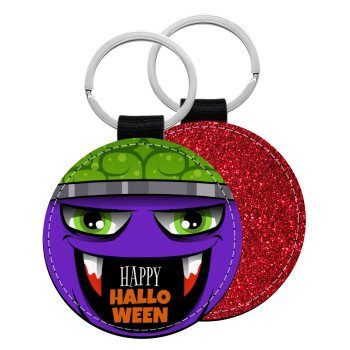Halloween trick or treat Monster, Μπρελόκ Δερματίνη, στρογγυλό ΚΟΚΚΙΝΟ (5cm)