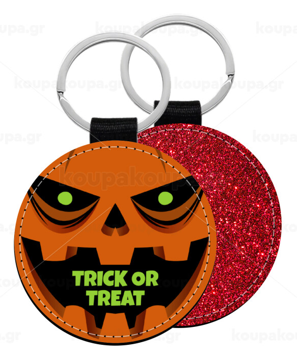 Halloween trick or treat Pumpkins, Μπρελόκ Δερματίνη, στρογγυλό ΚΟΚΚΙΝΟ (5cm)