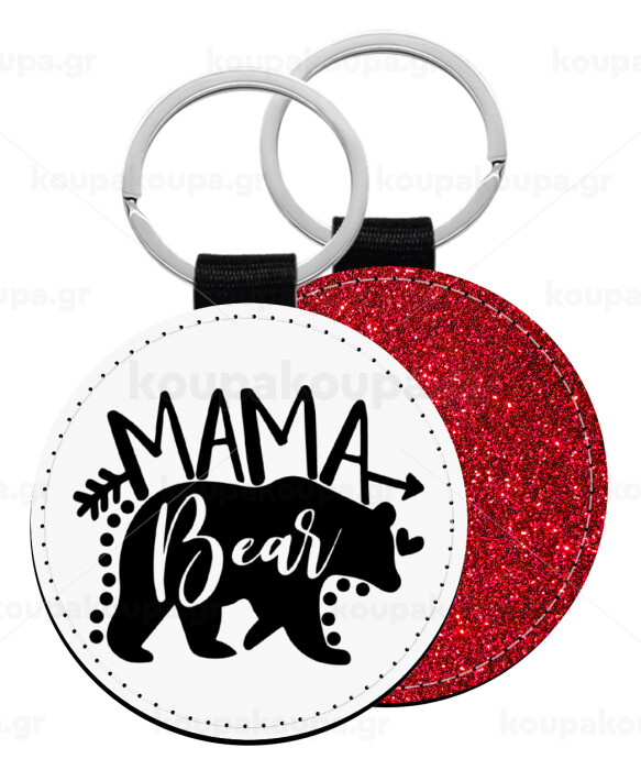 Mama Bear, Μπρελόκ Δερματίνη, στρογγυλό ΚΟΚΚΙΝΟ (5cm)