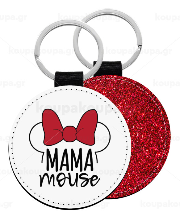MAMA mouse, Μπρελόκ Δερματίνη, στρογγυλό ΚΟΚΚΙΝΟ (5cm)